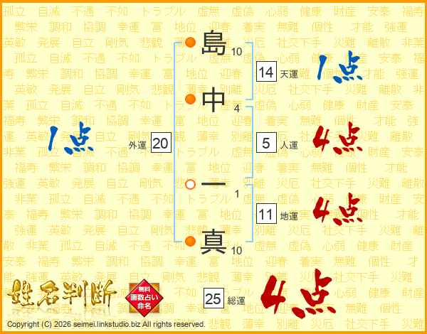 島中一真さんの総運は25画の4点!