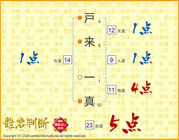 戸来一真さんの総運は23画の5点!