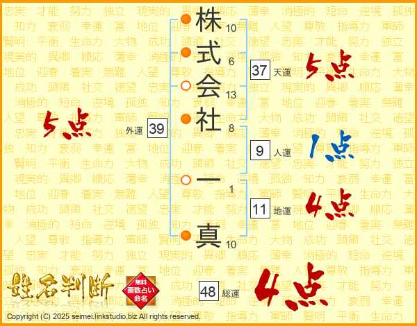 株(10画)式(6画)会(13画)社(8画) 一(1画)真(10画)