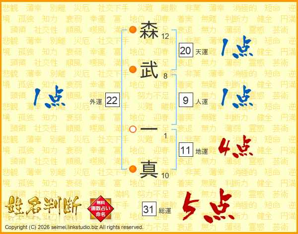 森武一真さんの総運は31画の5点!