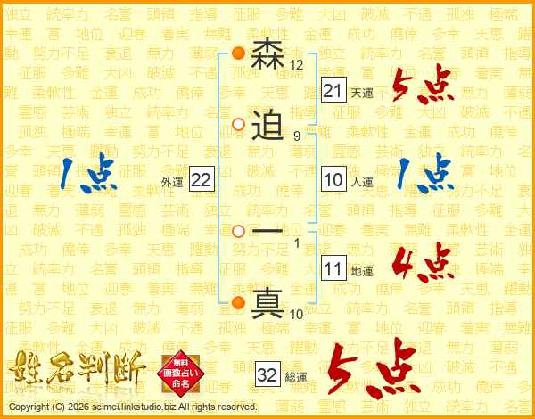 森迫一真さんの総運は32画の5点!