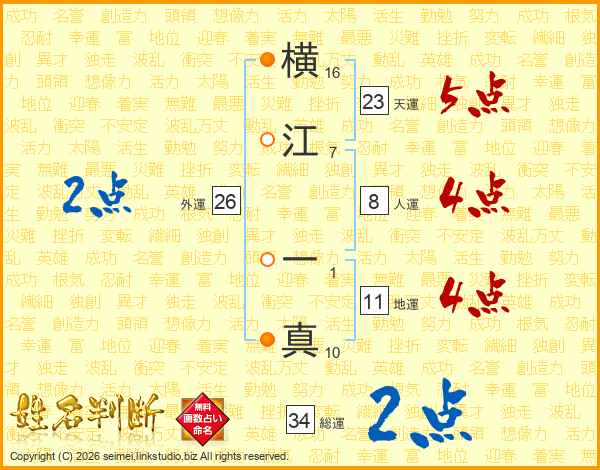 横江一真さんの総運は34画の2点!