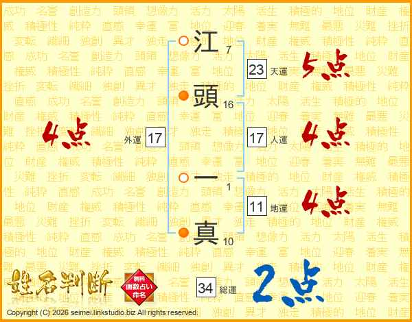 江頭一真さんの総運は34画の2点!