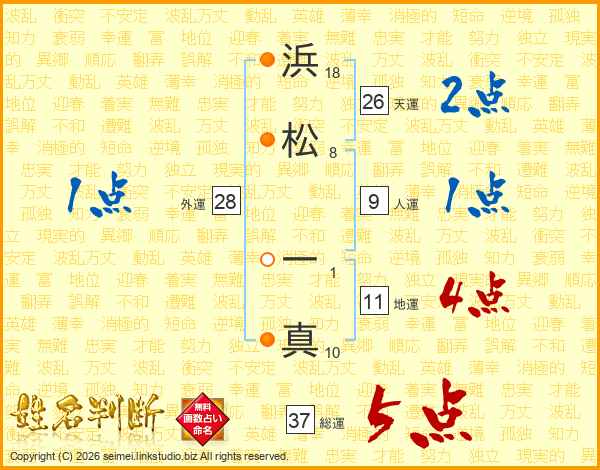 浜松一真さんの総運は37画の5点!