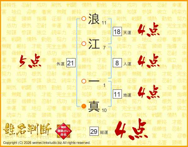 浪江一真さんの外運は21画の5点!