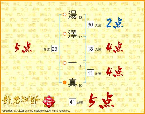 湯澤一真さんの総運は41画の5点!
