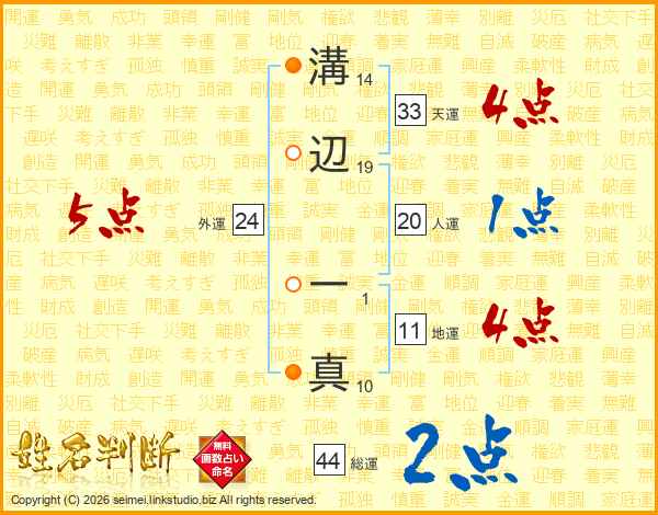 溝辺一真さんの総運は44画の2点!