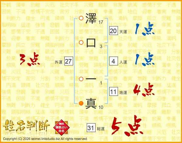 澤口一真さんの総運は31画の5点!