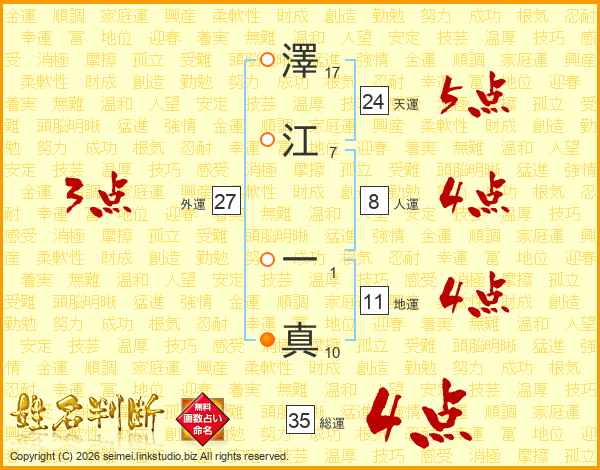 澤江一真さんの総運は35画の4点!