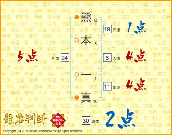 熊本一真さんの総運は30画の2点!