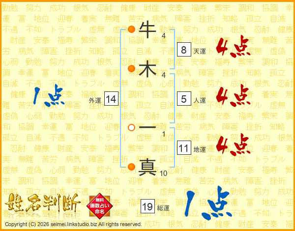 牛木一真さんの総運は19画の1点!