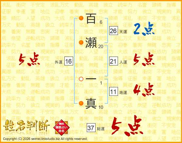百瀬一真さんの総運は37画の5点!