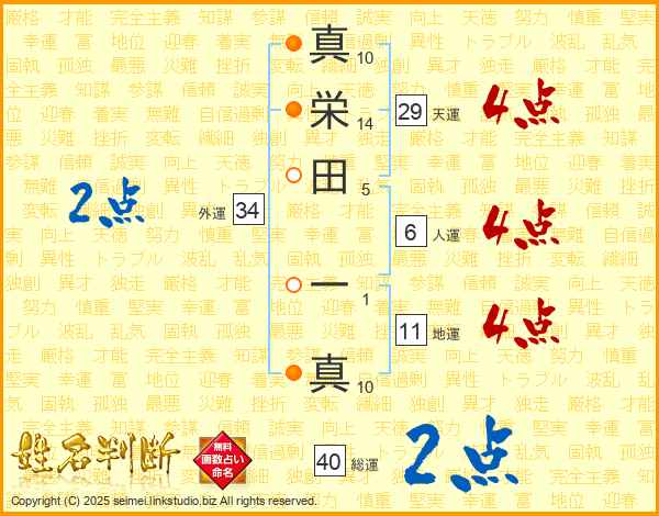 真栄田一真さんの総運は40画の2点!