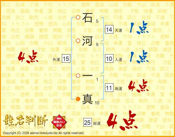 石河一真さんの総運は25画の4点!