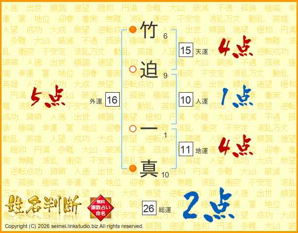 竹迫一真さんの総運は26画の2点!