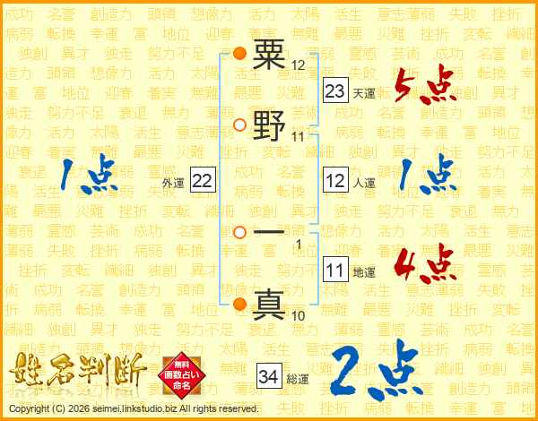 粟野一真さんの総運は34画の2点!