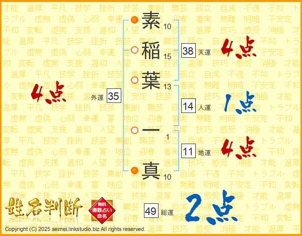 素稲葉一真さんの総運は49画の2点!