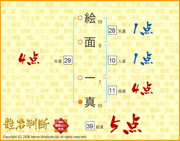 絵面一真さんの総運は39画の5点!