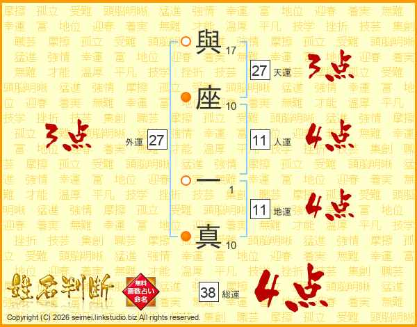 與座一真さんの総運は38画の4点!