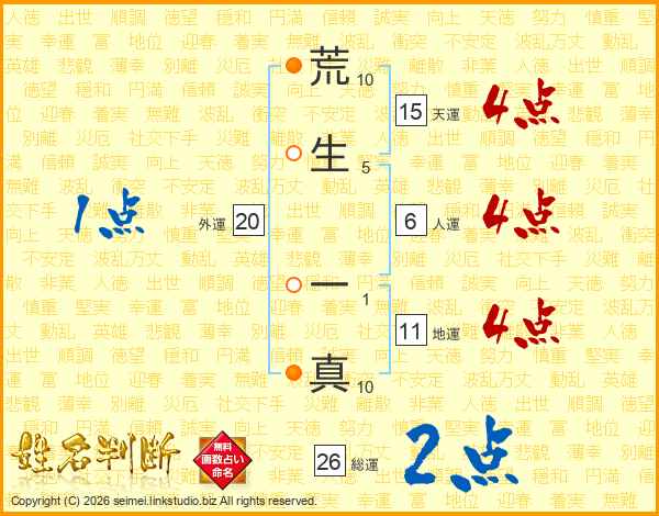 荒生一真さんの総運は26画の2点!