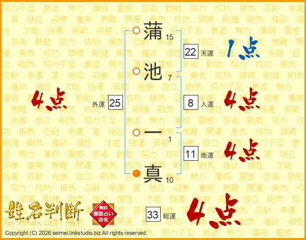 蒲池一真さんの総運は33画の4点!