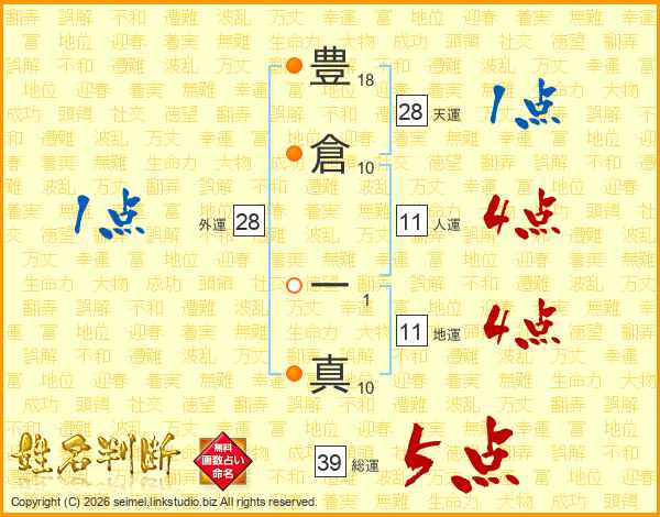 豊倉一真さんの総運は39画の5点!