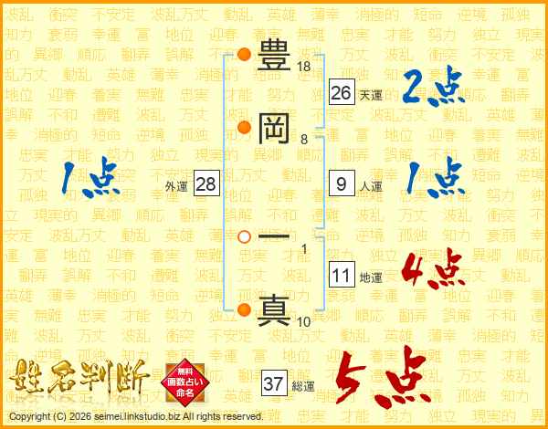 豊岡一真さんの総運は37画の5点!