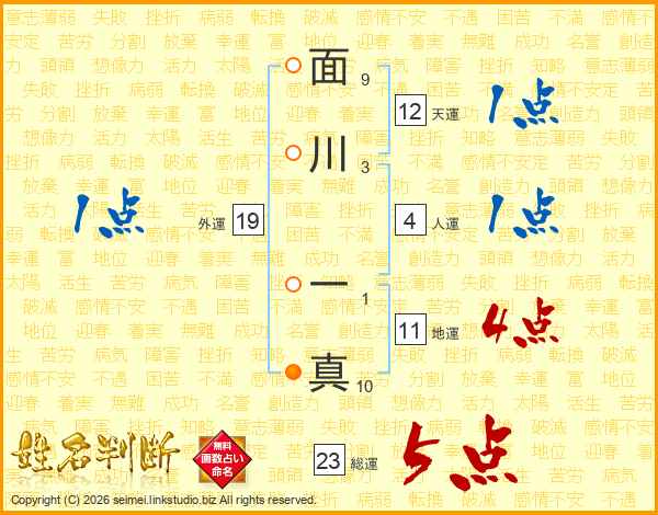 面川一真さんの地運は11画の4点!