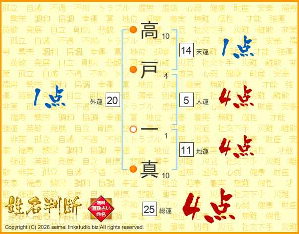 高戸一真さんの総運は25画の4点!