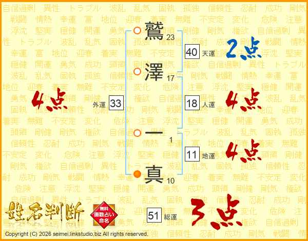鷲澤一真さんの天運は40画の2点!