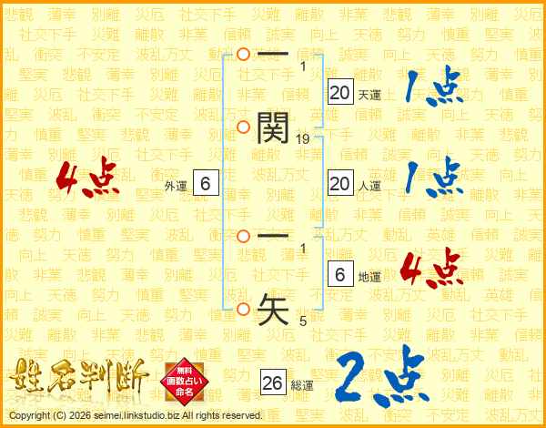 画数の奇数(○陽)と偶数(●陰)の配列で吉凶を占います。どちらかにかたよる名前は大凶名で避ける必要があります。画数の奇数偶数。