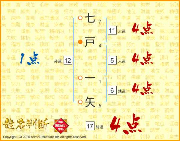 七戸一矢さんの総運は17画の4点!