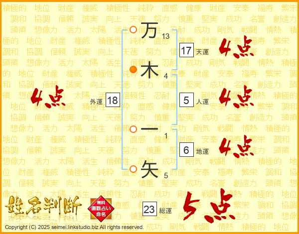 万木一矢さんの総運は23画の5点!