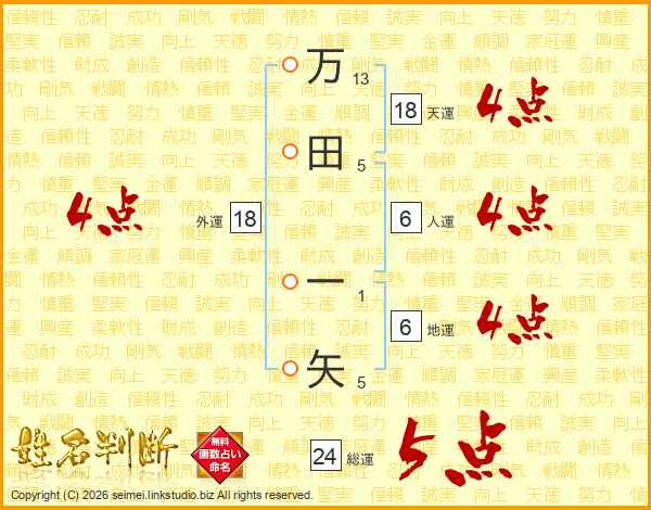 万田一矢さんの総運は24画の5点!