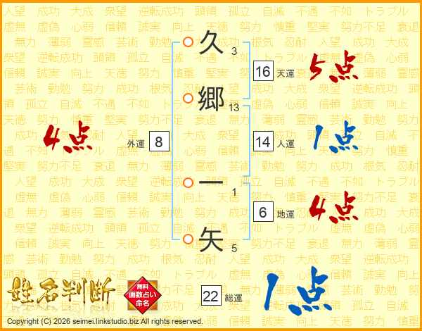 久郷一矢さんの天運は16画の5点!