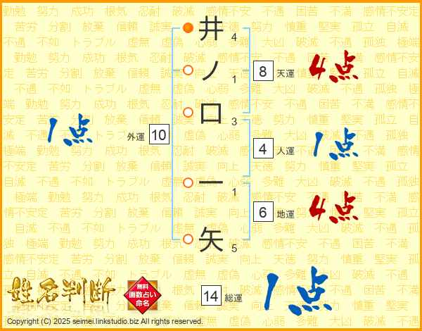 井ノ口一矢さんの総運は14画の1点!