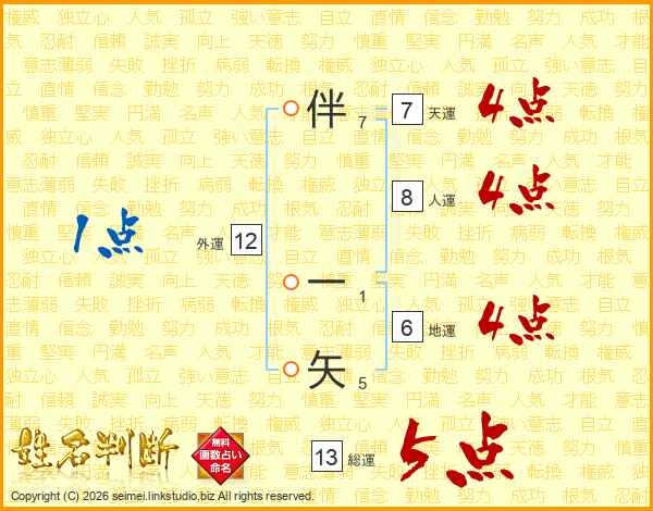 伴一矢さんの総運は13画の5点!