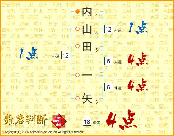 内(4画)山(3画)田(5画) 一(1画)矢(5画)