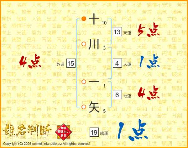 十川一矢さんの総運は19画の1点!