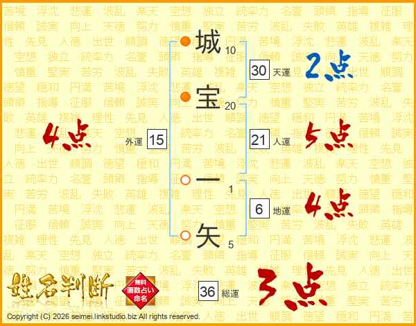 城宝一矢さんの総運は36画の3点!