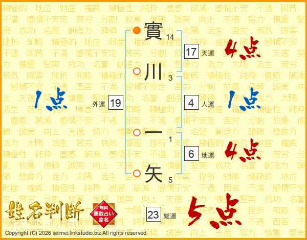 實川一矢さんの総運は23画の5点!