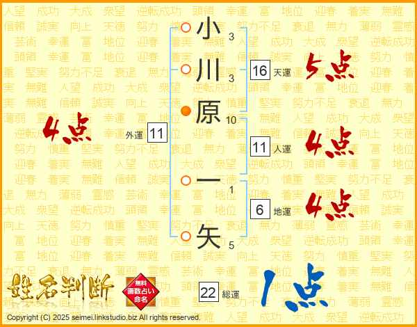 小(3画)川(3画)原(10画) 一(1画)矢(5画)