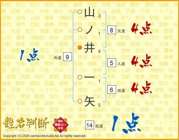 山(3画)ノ(1画)井(4画) 一(1画)矢(5画)