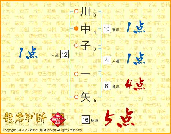 川(3画)中(4画)子(3画) 一(1画)矢(5画)