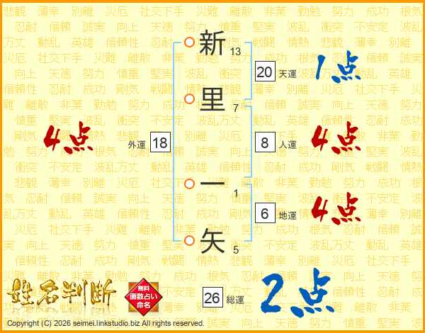 新里一矢さんの総運は26画の2点!