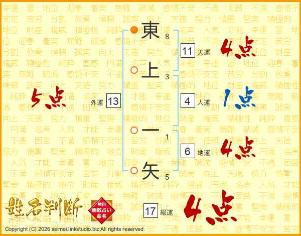 東上一矢さんの総運は17画の4点!