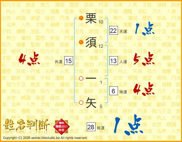 栗須一矢さんの天運は22画の1点!