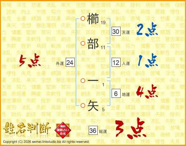 櫛部一矢さんの総運は36画の3点!
