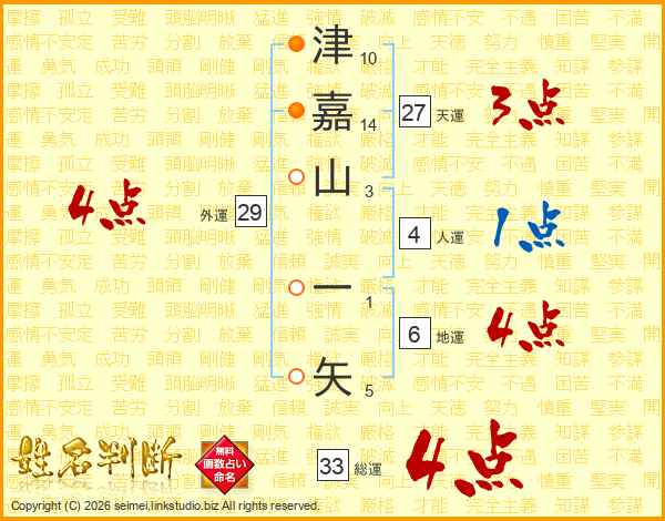 津嘉山一矢さんの総運は33画の4点!