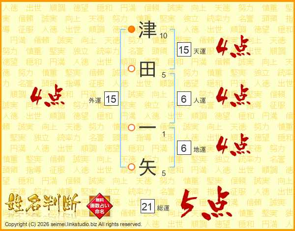 津田一矢さんの総運は21画の5点!